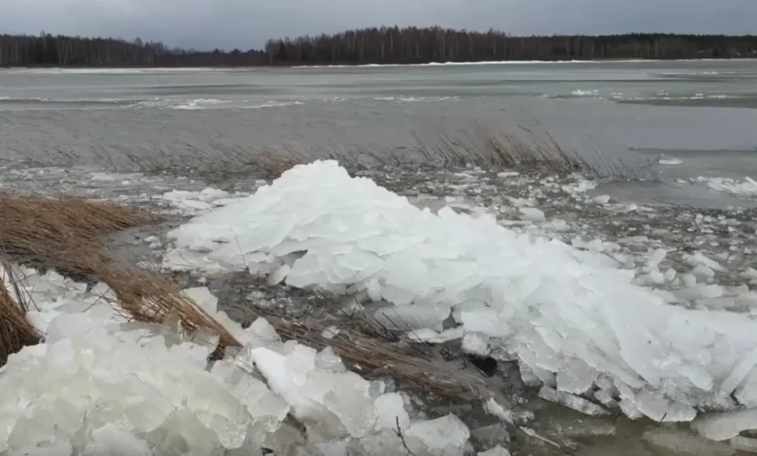 - Стал свидетелем необычного явления - ледоход на озере, который спровоцирован ветром. Лед оторвало от берега и усилиями ветра разогнало до следующего берега. Происходят наплывы льда на сушу.