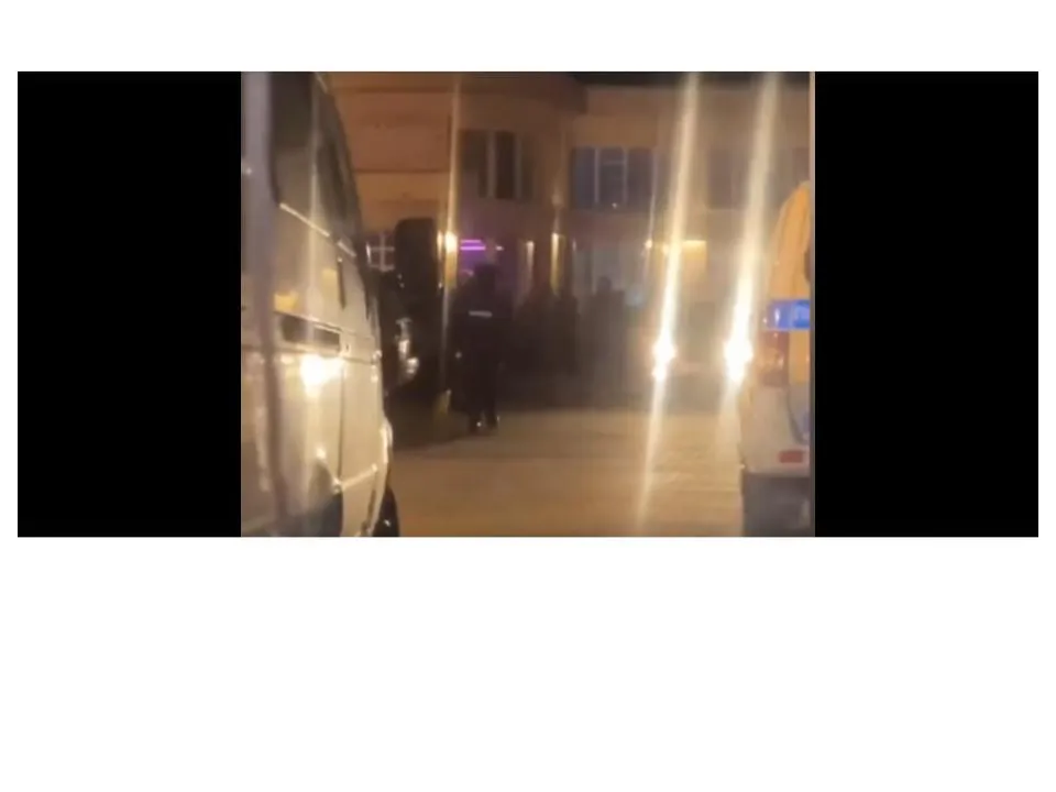 На кадрах видны несколько полицейских автомобилей, припаркованных перед заведением.