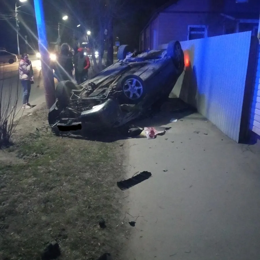 Машина перевернулась на крышу: ночью в Рязани две иномарки не поделили дорогу