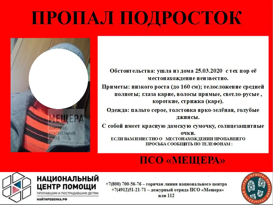 Девушка одета в серое пальто, ярко-зеленую толстовку, джинсы и белые кроссовки. С собой носит красную дамскую сумочку и солнцезащитные очки. Если вы видели девушку или знаете, где она может находиться, сообщите по телефону +7(4912)51-21-71.