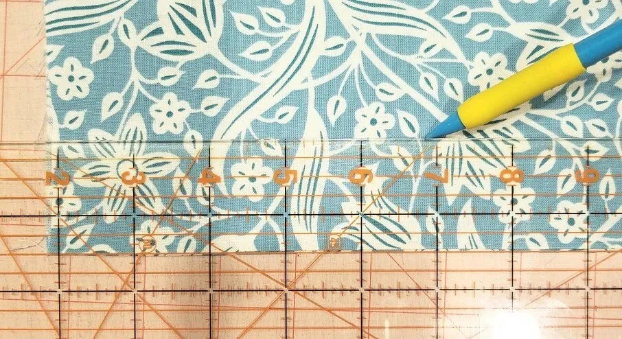 Разложим деталь так, чтобы не прошитые края были по бокам, а шов снизу. Отмеряем от нижней линии 3,8 см, ставим метку. От этой линии вверх откладываем еще 2,5 см и проводим вторую линию.