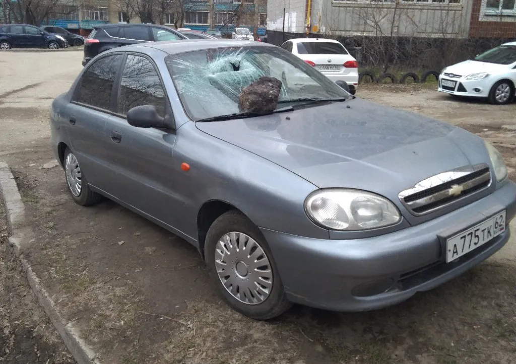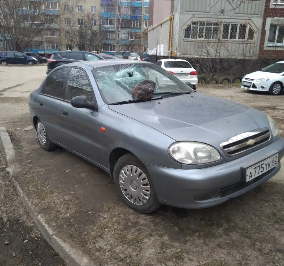 Как суровые рязанцы берегут газон: припаркованному автомобилю прилетел валун в лобовое стекло