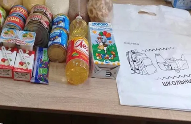 В продуктовые наборы, рассчитанные на пятидневное питание, входят молоко, йогурт, консервы, крупы, макароны, сушки, соки и другие продукты, одобренные Роспотребнадзором.