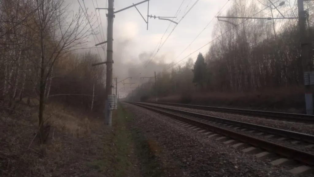 - В 17:00 часов, находясь в Карцево, увидел издалека чёрный густой дым и почувствовал очень едкий химический запа. Отправился в ту сторону. А там около железной дороги на перегоне Лесок-Турлатово на небольшом предприятии жгут покрышки, периодически подбрасывая новые в огонь.