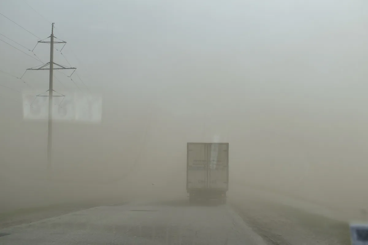 Скорость ветра сегодня достигает 21 метра в секунду. Иногда ветер бывает даже сильнее, но пыльной бури, как сегодня, никогда не было.