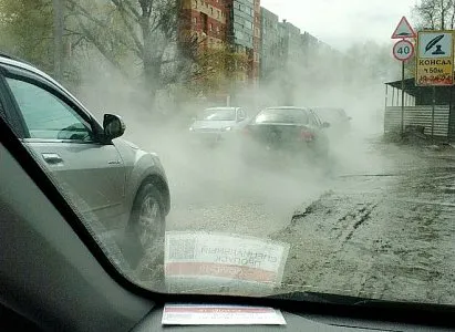 В четверг, 30 апреля на улице Татарской в Рязани прорвало трубу. Фотогорафии с места происшествия очевидец опубликовал в социальных сетях.