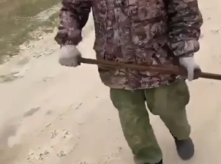 В подписи к видео утверждается, что девушка просто шла мимо. На кадрах видно, как пожилой мужчина, вооруженный длинной арматурой, преграждает ей дорогу. Исход конфликта пока неизвестен.