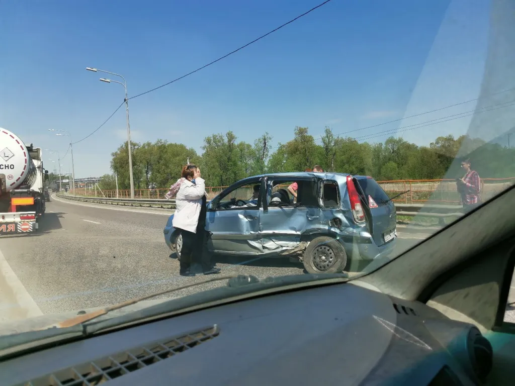 В результате происшествия водитель и 62-летняя пассажирка автомобиля “Форд” получили травмы и были госпитализированы. Обстоятельства произошедшего уточняются.