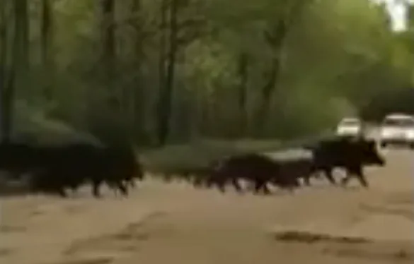 Переходили дорогу: под Рязанью заметили стадо кабанов