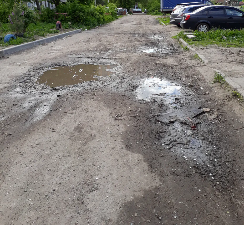 Асфальт здесь есть, но ямы активно конкурируют с ним по занимаемой площади.