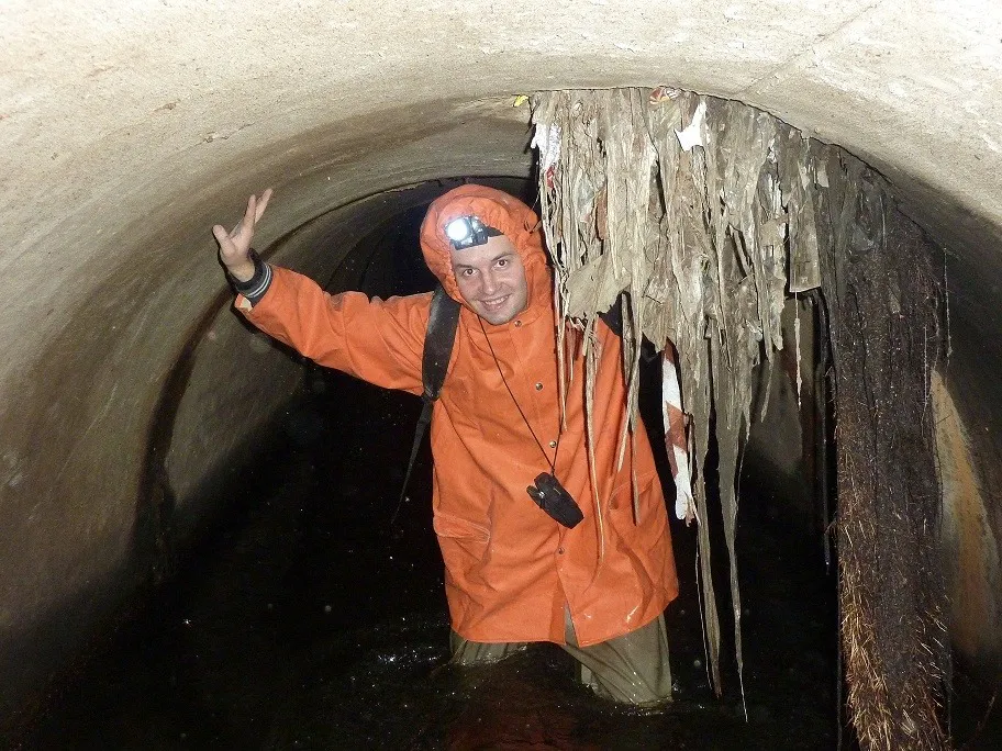 Автор также разместил уникальные фото, сделанные 5 лет назад, на которых запечатлено, как Антон Сумин вместе с командой спелестологов обследовали русло подземной реки Лыбедь. Рязанский журналист был под впечатлением и написал, что "своими глазами видел огромные "щупальца" корней деревьев, которые проросли вглубь ливневки на 6-7 метров..."