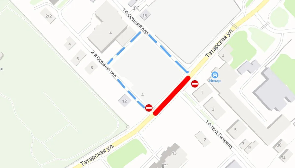 Место проведения работ огородили, около него установили предупреждающие знаки. Мэрия сообщает, что объехать перекрытый участок можно по 1-му и 2-му Осеннему переулку.