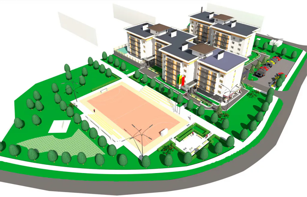 Мало того, что через дорогу от дома шумят сосны, так еще и двор озеленят и благоустроят. Места для семейных прогулок, современная детская площадка, спортивная зона с волейбольной площадкой, ровный газон - это ваш будущий двор, в который вы будете возвращаться с работы.