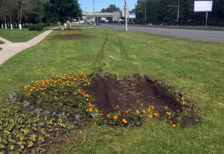 В пятницу, 5 июня на Московском шоссе в Рязани неизвестный водитель уничтожил клумбу. Об этом рассказала пресс-служба горадминистрации. Судя по фотографии, которую опубликовала мэрия, автомобиль проехал по газону, а затем раздавил газон. По данным городских властей, пострадало 300 саженцев цветов.