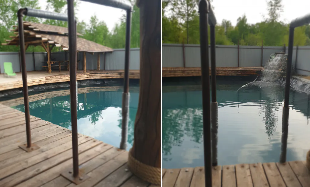 А после бани во дворе ждет купель с теплой водой под открытым небом. Отмокать в ней – одно удовольствие. Лежишь, смотришь в небо, а если это еще и ясный вечер, то любуешься звездами. Сотрудники нашей редакции остались от купели в восторге. А если хочется после жаркой бани освежиться, то рядом есть собственный пруд, в который можно запрыгнуть сразу после парилки. Кстати, и купель, и пруд – уникальная особенность именно «Асгарда». Такого в других банях города вы не найдете.