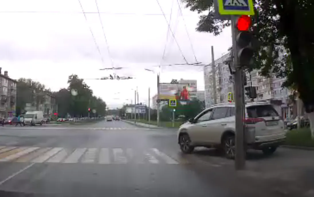 Было лень стоять: водитель кроссовера объехал красный светофор по тротуару