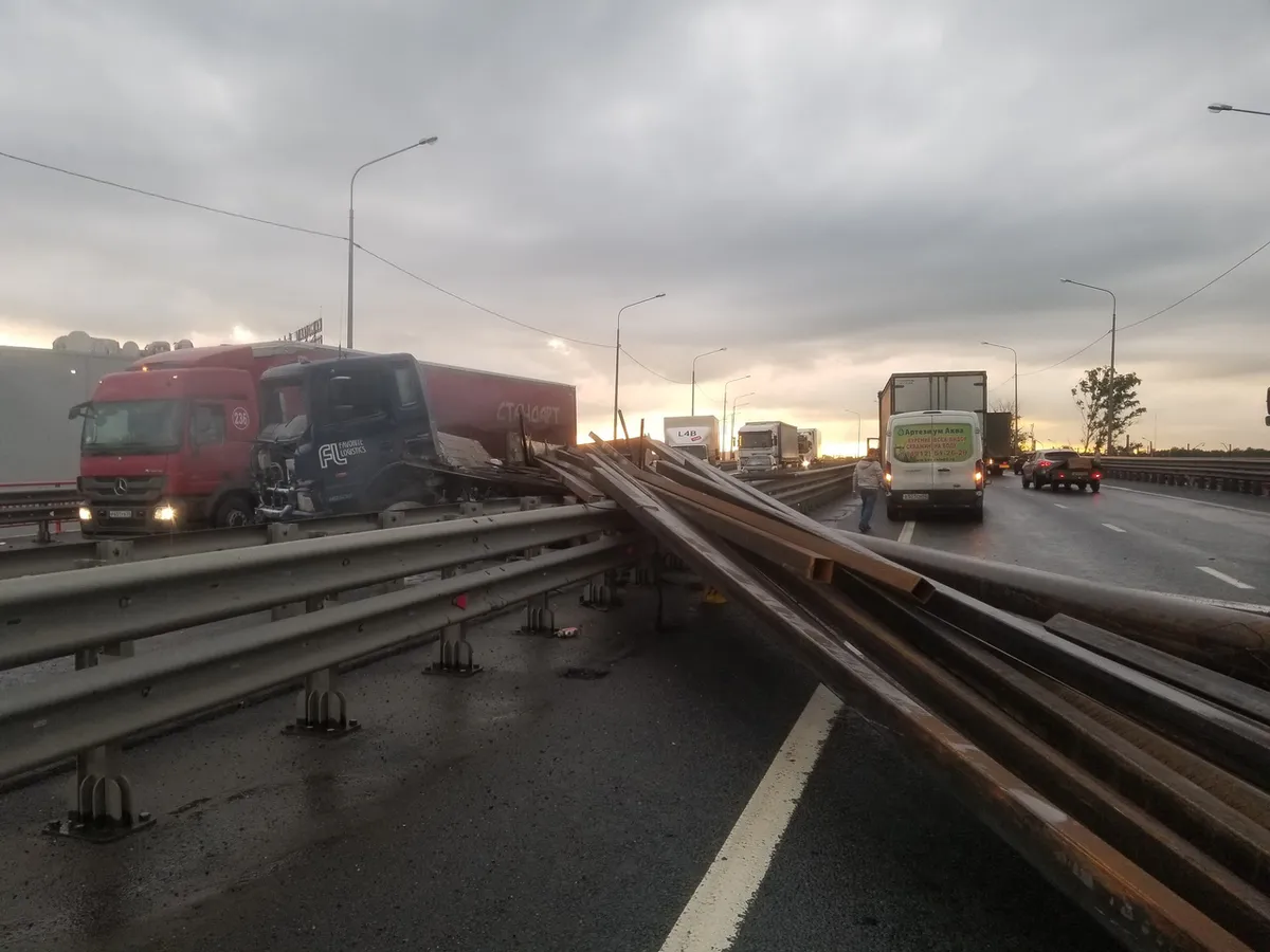 Балки на дороге: фура попала в аварию на Южной окружной