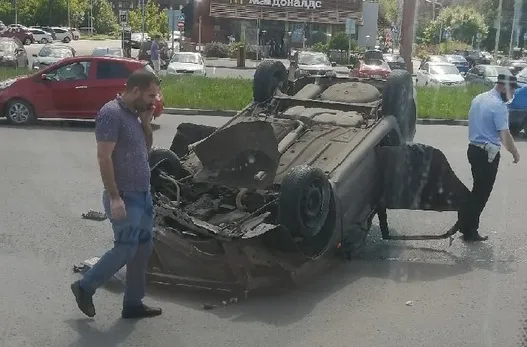 Без пострадавших: около Центрального автовокзала автомобиль перевернулся на крышу
