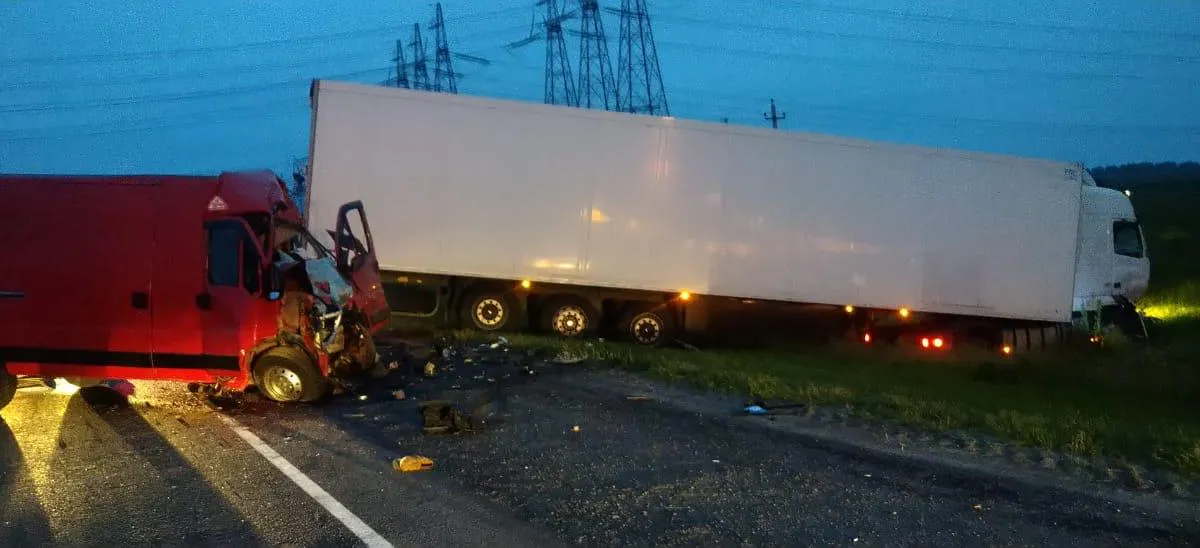 В результате аварии водитель микроавтобуса скончался на месте от полученных травм. По факту аварии проводится проверка, обстоятельства произошедшего уточняются.