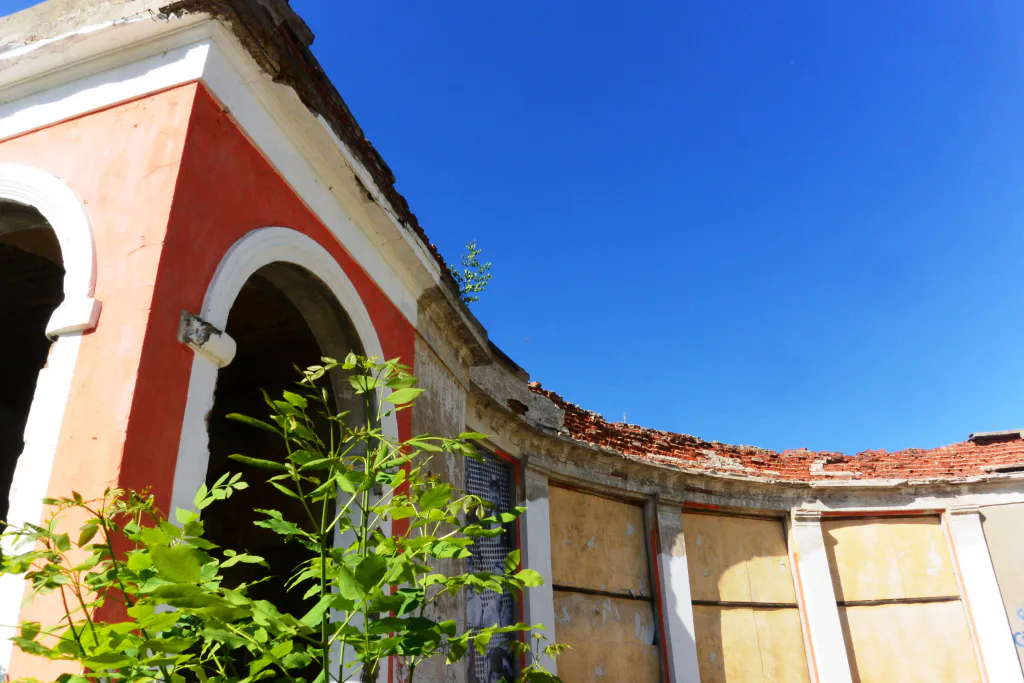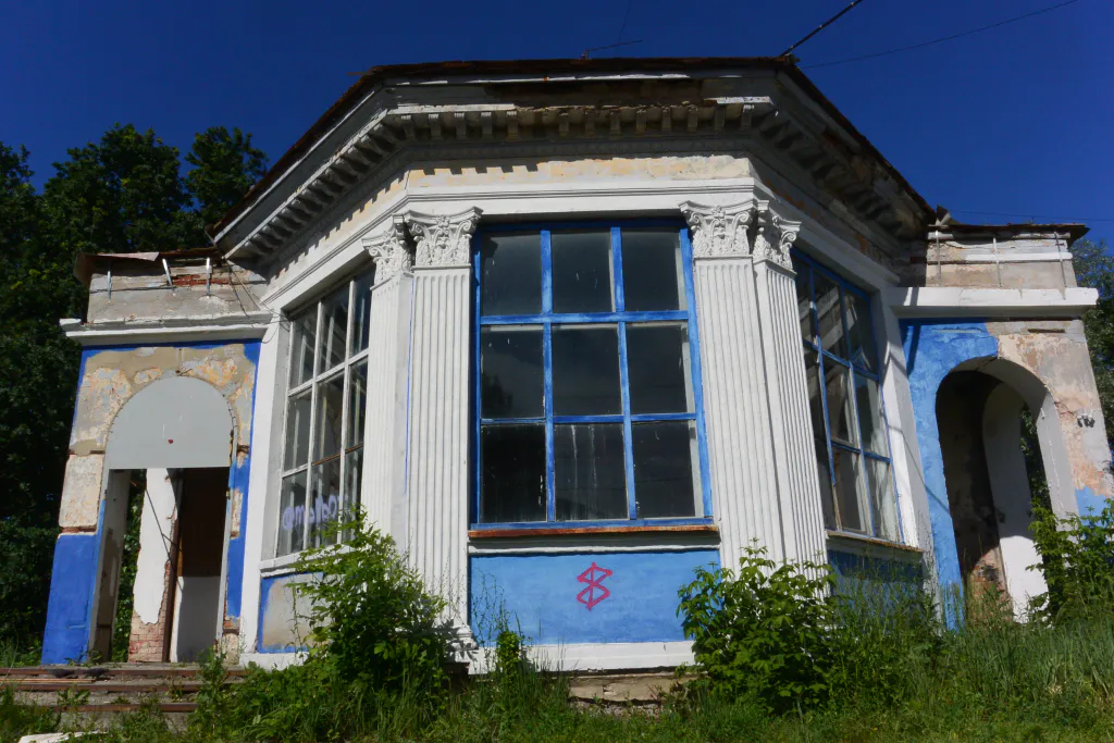 Баннер - это действительно временная мера. Долго такая защита не продержится, особенно во время серьезных дождей - например, таких, как в начале июня, когда улицы города просто затопило. Поэтому мы поддерживаем рекомендации ВООПИиК, адресованные мэрии. А еще мы съездили к павильону "Мещера" и поснимали его, пока дожди не превратили здание в затопленное нечто.