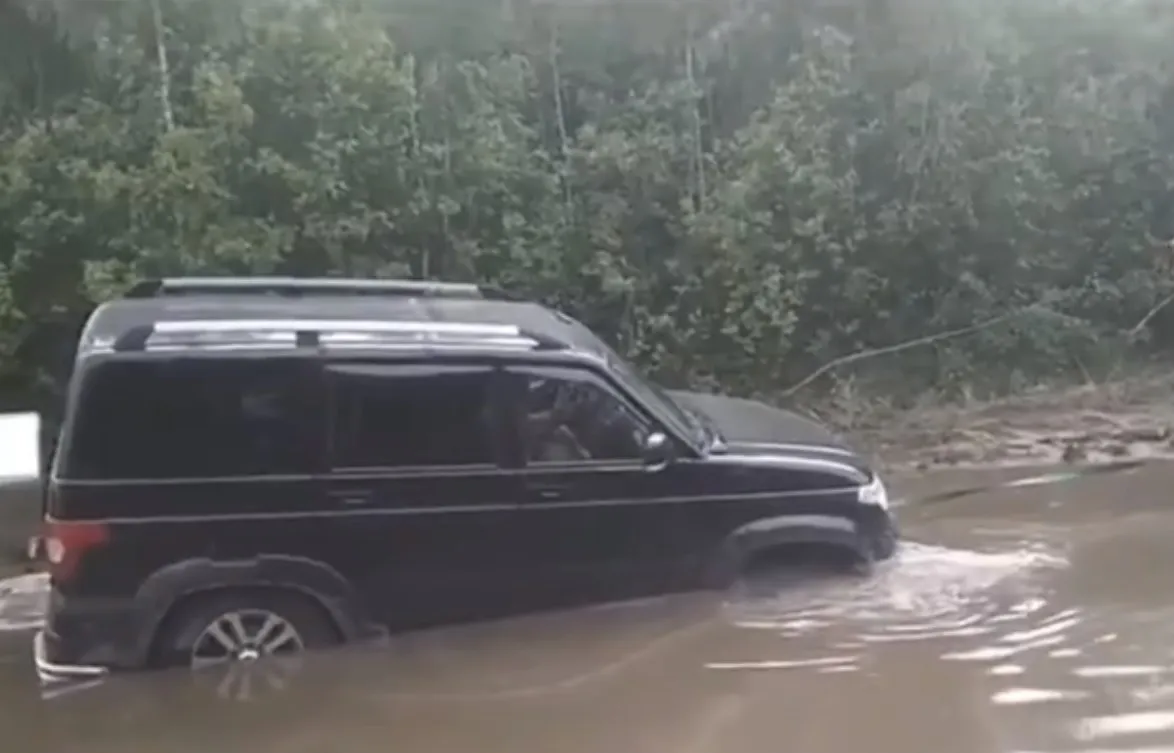 Сегодня, 23 июня, внедорожник УАЗ  утонул в огромной луже по пути в клепиковский посёлок Голованово. Видео утонувшего “уазика” опубликовала ГТРК «Ока».