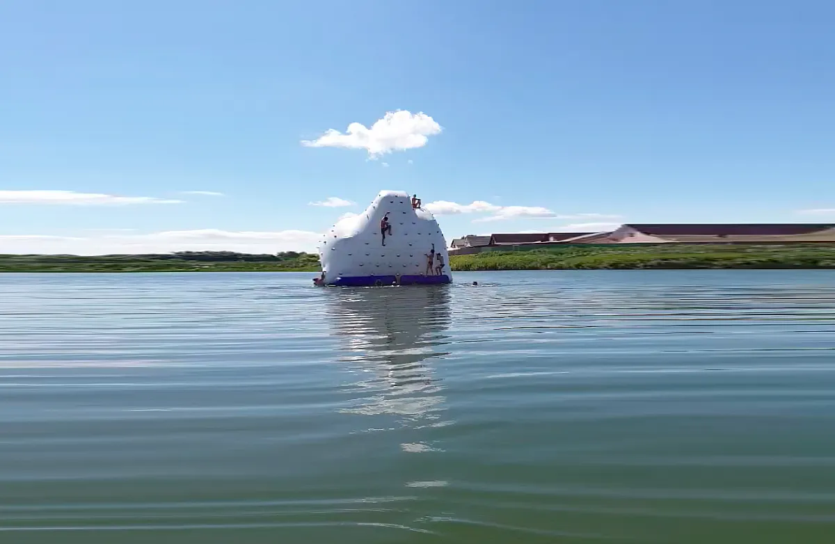 Здесь расположено несколько чистых прудов с песчаными пляжами, есть живописная территория для отдыха и прогулок, места для пикников. И самое главное - на днях владельцы территории установили здесь замечательный водный аттракцион - белоснежный надувной «айсберг», который понравится и детям и взрослым. Глубина в районе аттракциона составляет около 4,5 метров, поэтому прыжки в воду будут абсолютно безопасными.