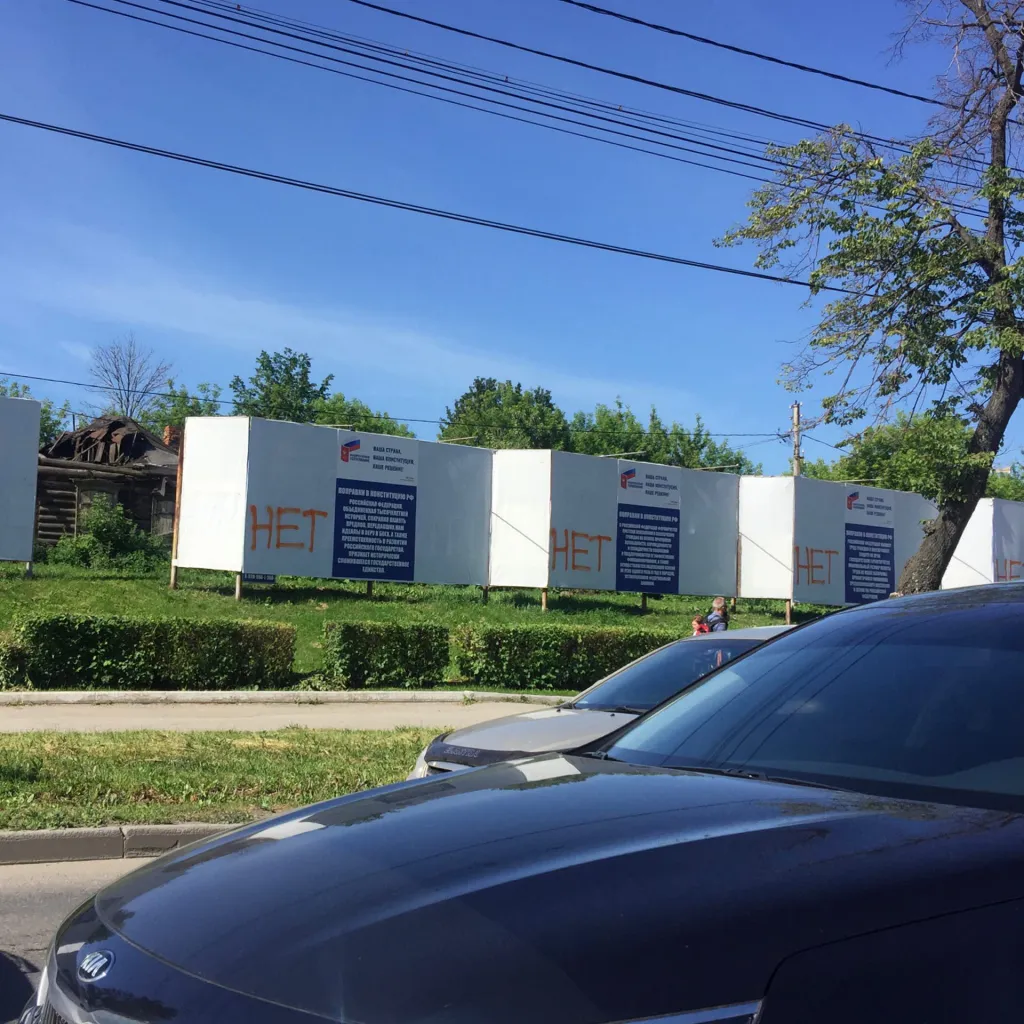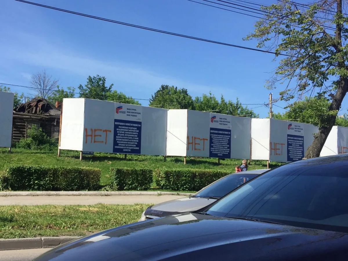 "Нет": неизвестные изрисовали баннеры о голосовании за поправки в Конституцию