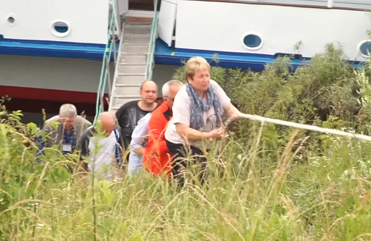 Хлебосольная встреча: туристам, приплывшим в Касимов на теплоходе, пришлось подниматься в город по канату