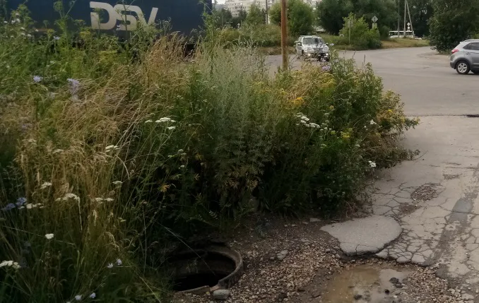 В Рязани на улице Зубковой между домами 27 и 27А прячется открытый люк, в который в темноте или просто по невнимательности из-за выросшей рядом травы можно легко провалиться ребенку или любому другому прохожему.