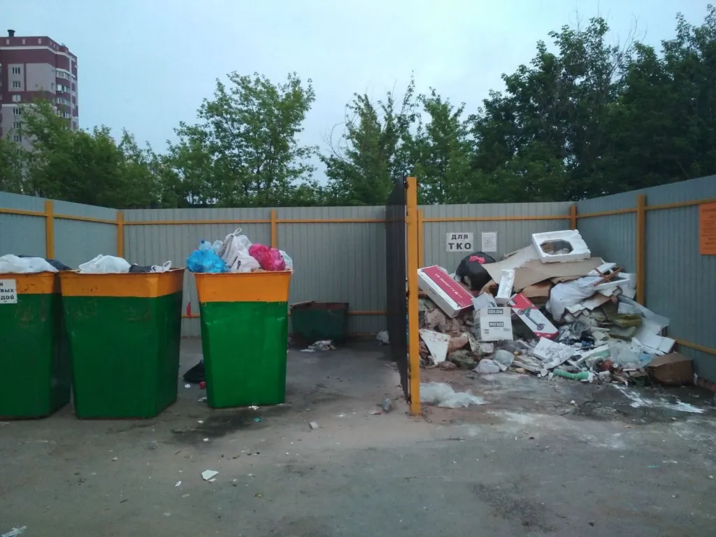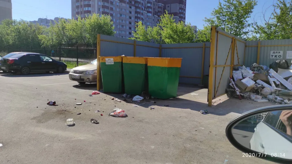 Долгое время не вывозили третий бак, и по площадке был разбросан мусор