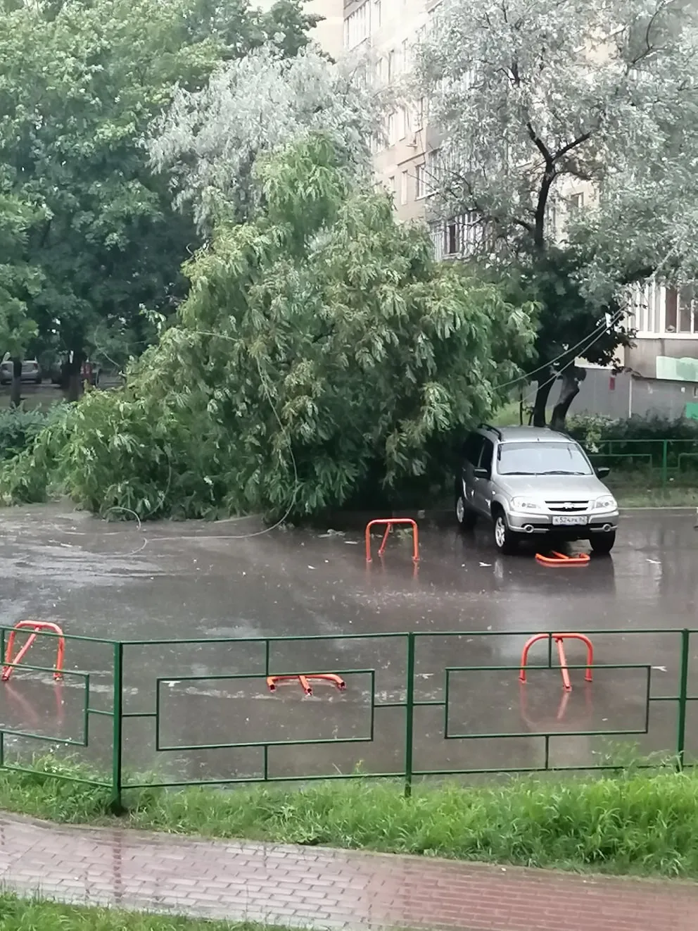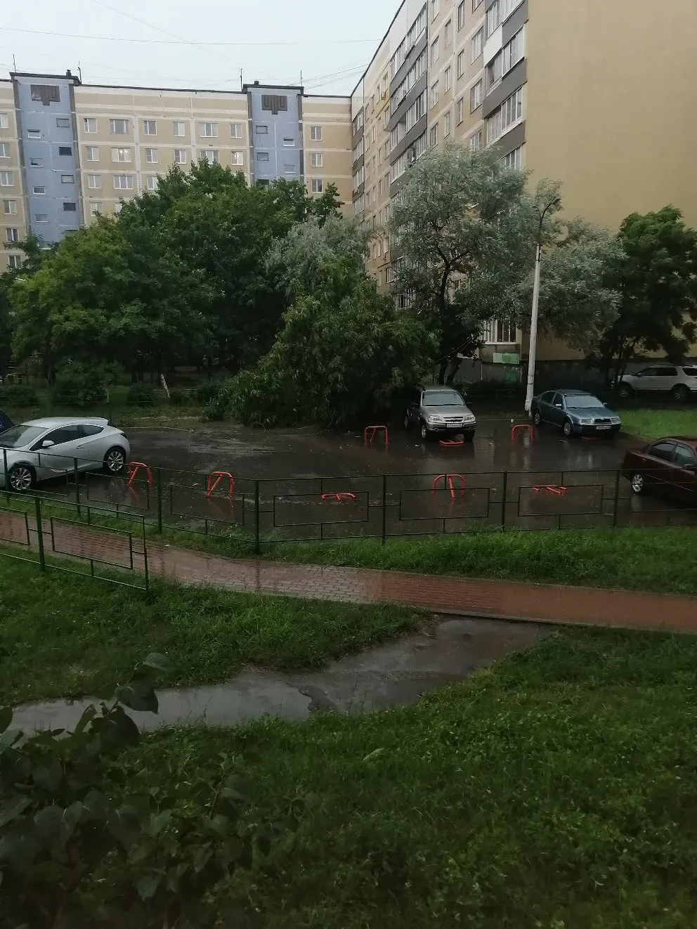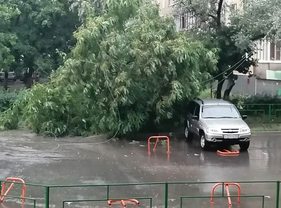Первые последствия дождя: на Новоселов рухнуло дерево