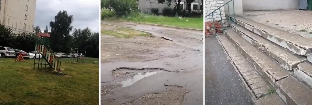 В качестве примера, как должна быть устроена придомовая территория, девушка привела московский сквер. Она рассказала, что он был отремонтирован три года назад, похвалила дорожки и клумбы. Также москвичка продемонстрировала местную детскую площадку и отметила, что такие объекты стоят почти в каждом дворе.