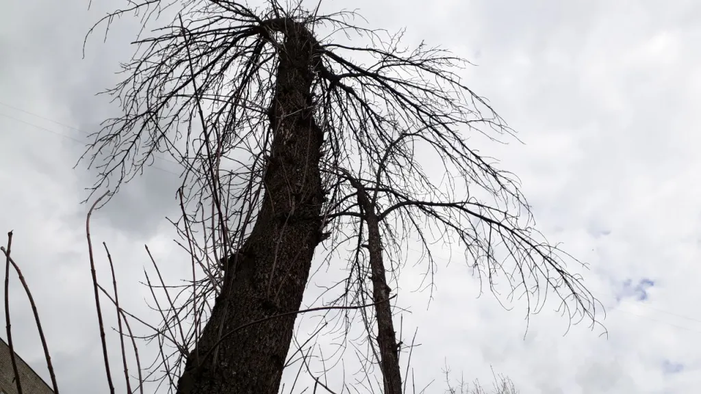 А вдруг упадут на ребенка? Возле школы №40 уже пару лет стоит "аллея" из сухих деревьев