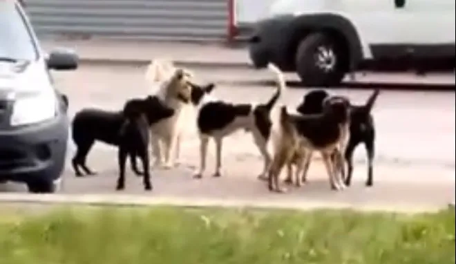 На видео можно заметить, как огромная стая собак спокойно разгуливает в центре поселка. Никто не знает, как себя вести в такой ситуации, даже взрослый человек может поддаться панике. Как избежать нападение от бездомных собак можете прочитать здесь.