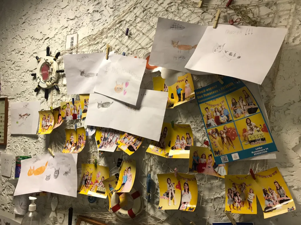 Владелец готов пристроить всех животных, кроме трех. Для него они особенные, потому что с ними связаны теплые воспоминания. В это число входит самая первая кошка Маечка. Во время стройки, она забежала под машину, и владельцы приютили ее в своем заведении. Еще один постоялец - Президент. Его настоящее имя Локи, однако из-за своего важного характера дети прозвали его котом-президентом. В начале декабря 2018 года он забрался в вентиляционную трубу, чтобы погреться. Владельцы его оттуда вытащили и оставили жить в заведении. В котокафе на постоянной основе живет и девятимесячный рыжий кот Симба. С ним Вячеслав Фетисов выезжал на различные уроки доброты в школах, детских садах.