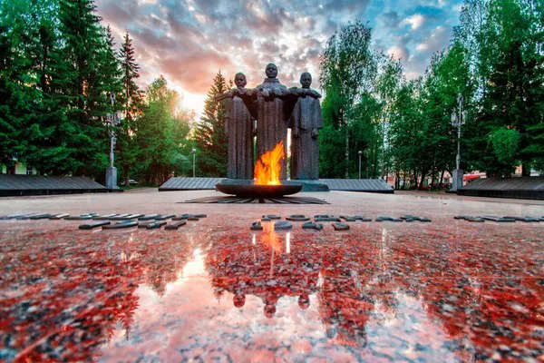 Мемориал «Вечная слава» был возведен в 1981 году. Он посвящен тысячам жителей Сыктывкара, которые погибли в боях во время Великой Отечественной войны. Всего в группу входят 3 скульптуры, символизирующие мать, жену и дочь павшего солдата. У их ног горит Вечный огонь. А по периметру установлены плиты с именами ветеранов. Недавно мемориал был дополнен изображениями ордена и опущенного полкового знамени. В День Победы именно сюда приходят люди после парада, чтобы почтить погибших, а также попробовать солдатской каши.