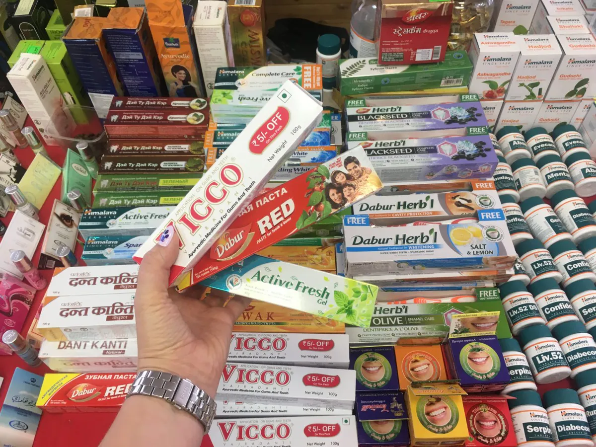 • индийская косметика, зубные пасты, антисептические мыло и шампуни