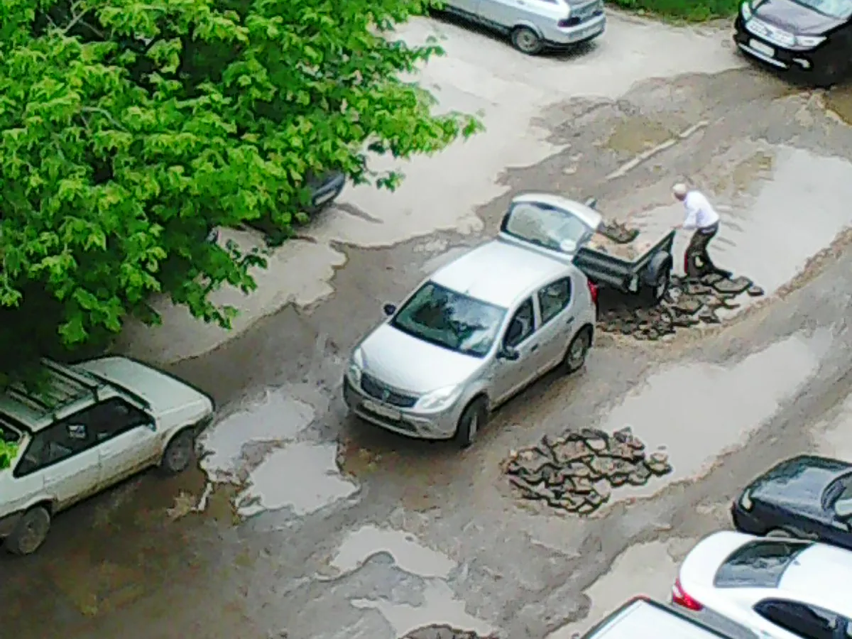 14 июня 2016 - Новости Рязани | progorod62.ru Рязанцы сами ремонтируют дороги в своих дворах. Фото такого ремонта разместили пользователи "Вконтакте".