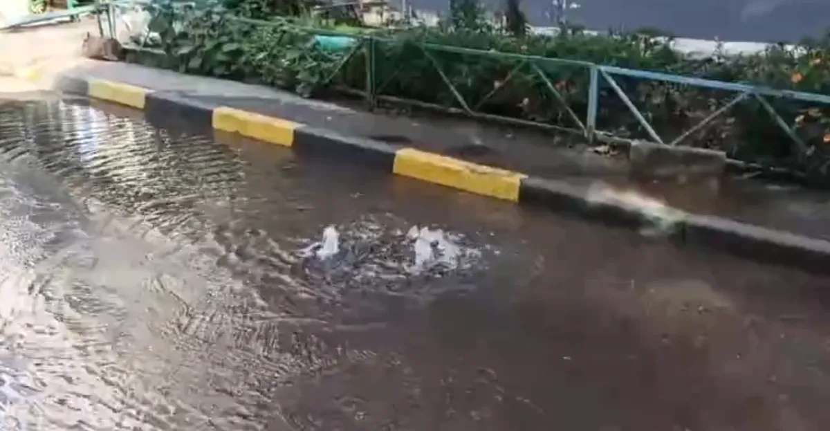 Судя по кадрам, вода бьет из-под крышки люка. Потоки воды рекой текут через весь двор, пытаясь превратить его в маленькую Венецию. Местные жители уже окрестили фонтан "артезианской скважиной".