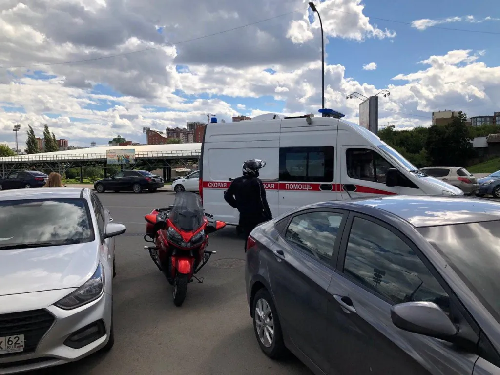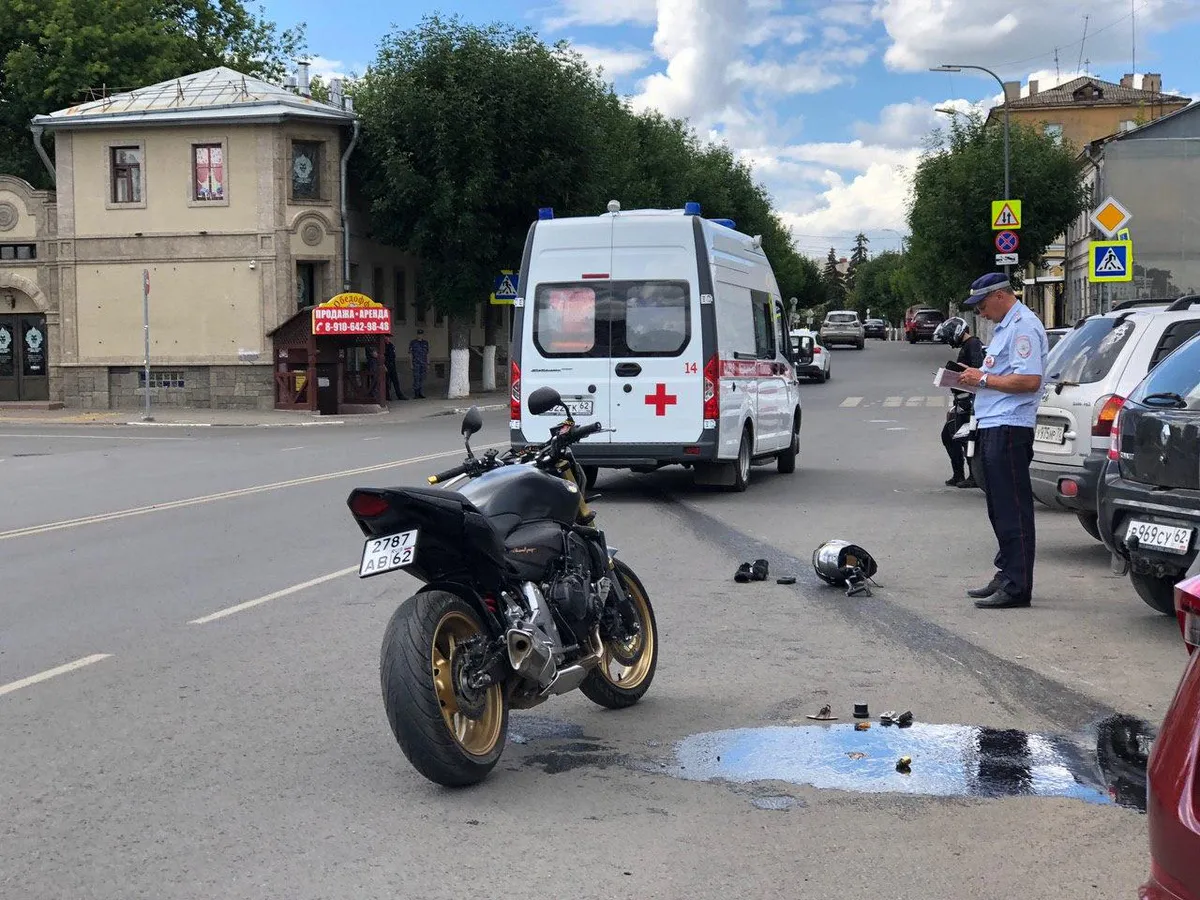 Возле отеля "Старый город" в центре Рязани произошла авария с участием мотоциклиста. Байкер вылетел на встречку и оказался в итоге на асфальте. Фото и видео в редакцию прислали очевидцы ДТП.