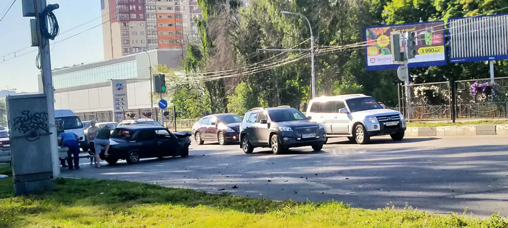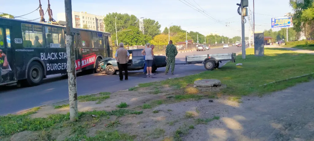 Утром 5 августа на Московском шоссе в Рязани разбились два автомобиля. Фото с места событий в редакцию прислал очевидец.