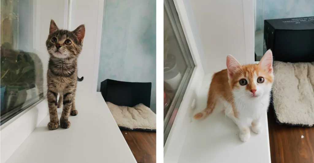 Родной дом с любящими хозяевами ищут две маленькие кошки. Сейчас котята находятся на передержке, но уже меньше чем через неделю им будет негде жить. Серая Полоска очень бойкая кошечка, а Рыжее Пятнышко пугливый питомец. Обе девочки приучены к лотку, едят сухой и влажный корм. Четырехмесячные котята обработаны от паразитов. Если вы хотите забрать одного, или сразу двух, питомцев, то звоните куратору Оксане по номеру 89511015679.