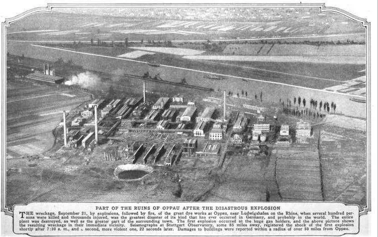 21 сентября 1921 года в немецком городке Оппау взлетел на воздух химический завод. Чудовищной силы взрыв уничтожил половину города и отправил на тот свет полтысячи человек. Взрыв прогремел утром, когда рабочие ночной смены сдавали пост коллегам дневной. Практически весь персонал оказался в числе жертв.