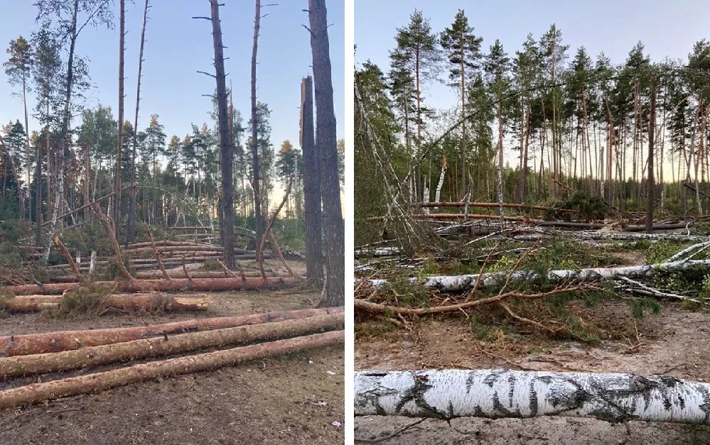 - Если ехать на пляж Ласковского озера не со стороны Деулино, а с противоположной - то можно увидеть как сосны вырваны с корнем. Не думаю, что это дело рук человека, скорее всего - это последствия июльского урагана.
