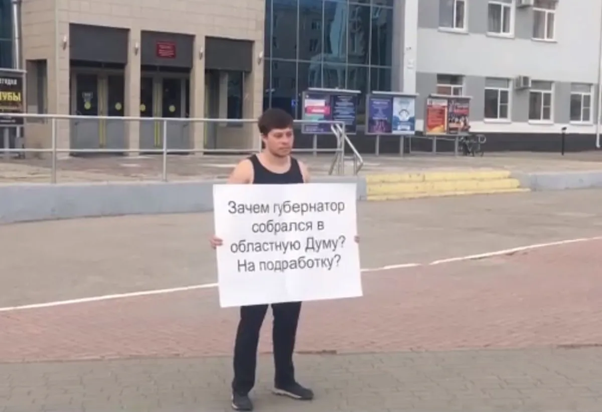 Молодой человек уже не первый раз устраивает пикет. Напомним, на прошлой неделе он вызывал губернатора на публичные дебаты.