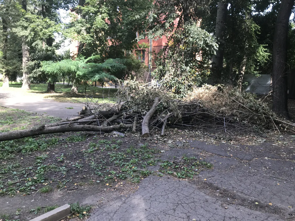 Черт ногу сломает! В сквере Дома офицеров неделями лежат спиленные деревья