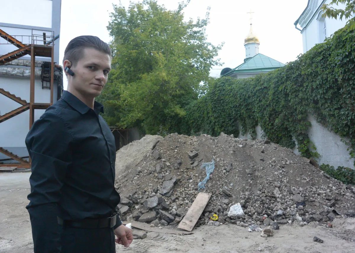 В Наташкином парке сейчас идут работы по благоустройству, раскопали траншеи. Рязанцы заметили в одной из них кое-что интересное и сообщили нам. 20 августа мы осмотрели участок, на котором велись работы, и обнаружили в глубокой траншее старинные кирпичные стены высотой в полтора метра. Они были полностью скрыты под землей. Выяснилось, что мы раскопали подземное помещение старого гостиного двора. Рабочие шушукались – говорят, нашли здесь предметы из белого металла.