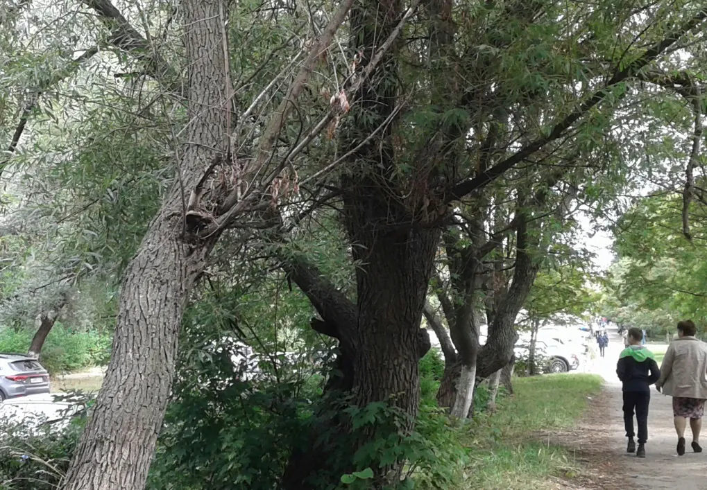 Одно из проблемных мест находится на улице Тимакова. Деревья там продолжают стоять, лишь потому, что держатся ветвями друг за друга. Похожая проблема и во дворе дома №13 на улице Пирогова. Там деревья представляют угрозу для детей на игровой площадке:
