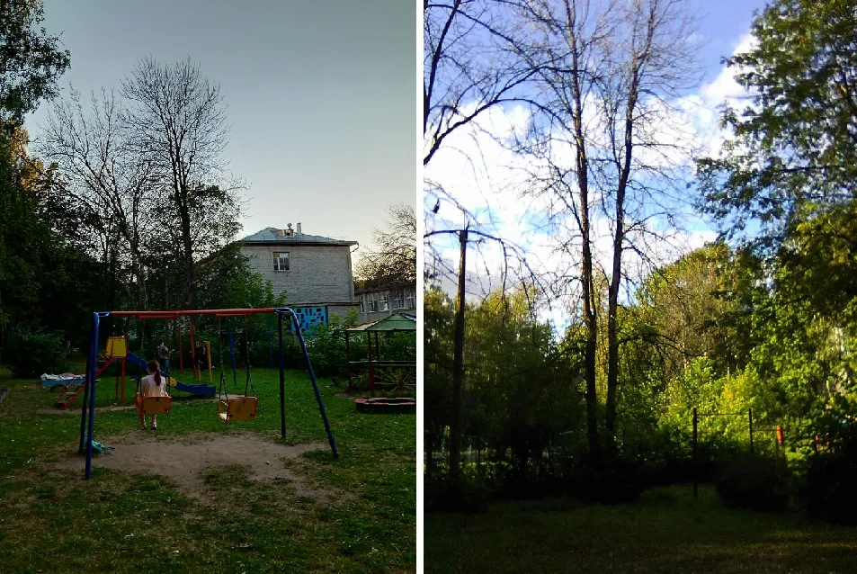 В рубрику “Народный контроль” пришла еще одна жалоба по этому вопросу - в одном из дворов Московского района сухие деревья нависают над детской площадкой. Рязанец, который прислал жалобу, прокомментировал: