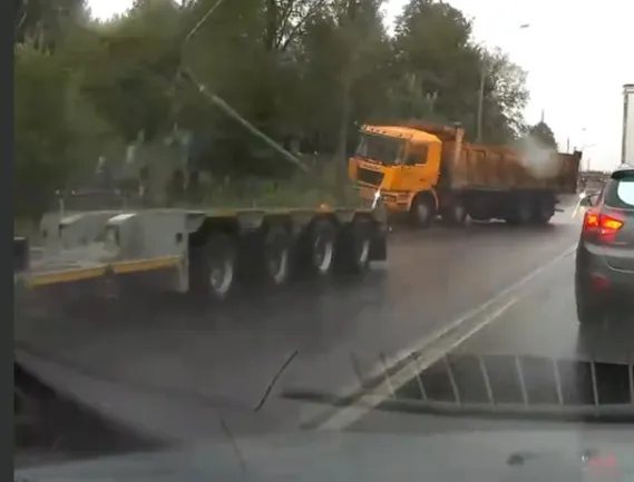 Вырвал с корнем: на Южной окружной фура снесла столб